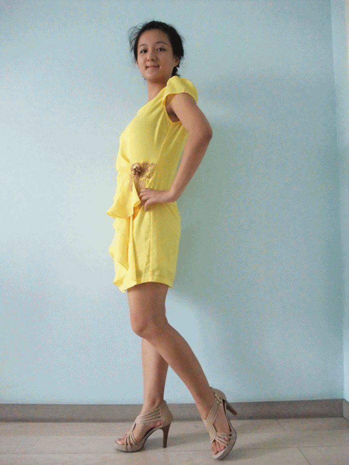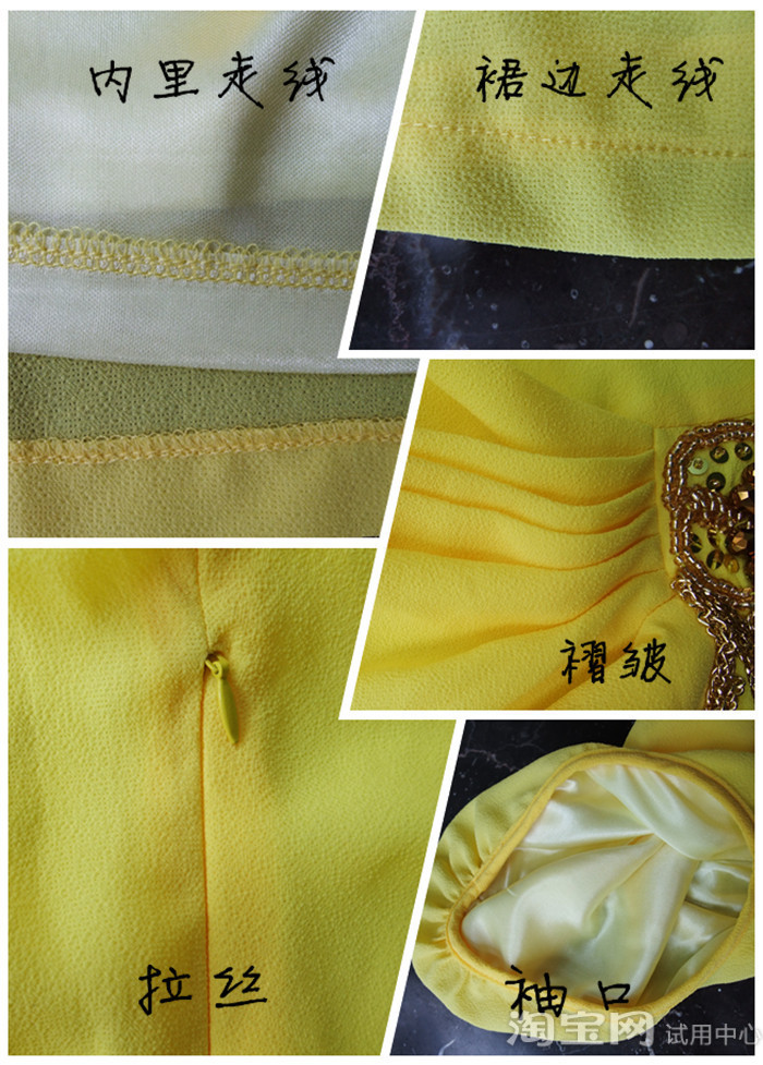Here is tried on ~ ~ ~ see under wear in the body of a first part details ~ ~ ~ round collar hubble-bubble sleeve design is reduction of age, at the same time is also very good decorate a face; Waist drape and skirt falbala very good got-up figure, even if there is little stomach is not very obvious, at the same time also very graceful and elegant; The waist of the fringe sequins decoration, ACTS as the dot eyeball, make the dress overall clever is not inflexible; Cuff reinforcement design, alar is also very level off, the opening size is very appropriate, don't worry about it, too ~ ~ ~