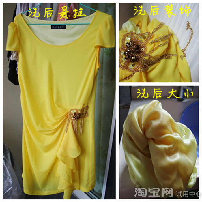 Gently against the after washed by hand, can be turned into smaller, not heavy. After washing the waist decoration not to take off the lacquer, but I washed away by a small lotus seed, the impact is not big. Hang to dry, after the overall very straight ~ ~
