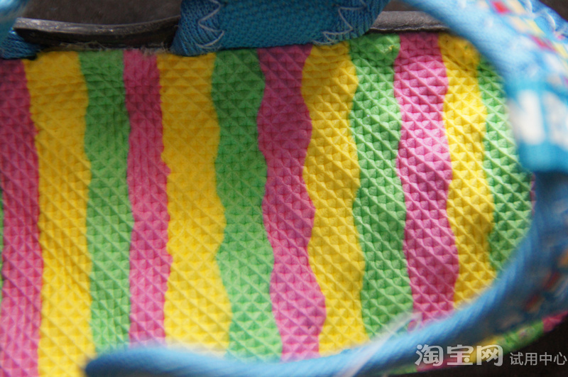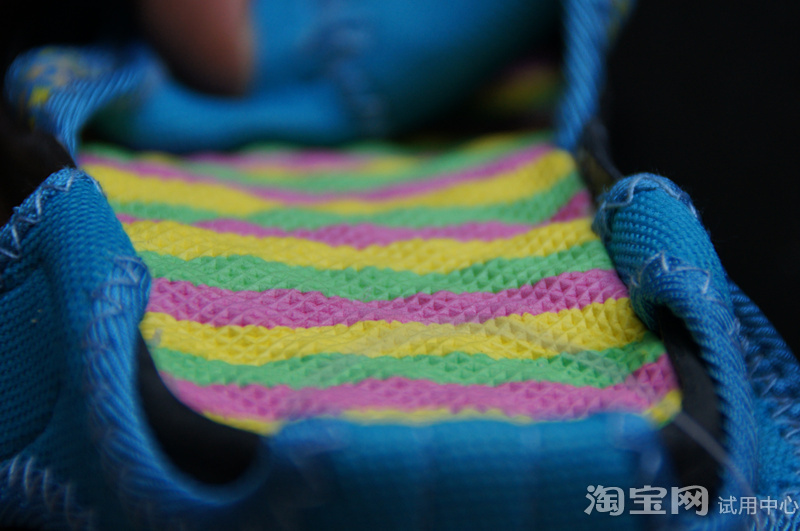Colorless multicolored soles are soft, ups and downs of wave particle believe is a kind of special design, don't have the effect of stimulation of plantar acupoint? Hope to be able to stimulate kids growing quickly, hey hey. But look good...